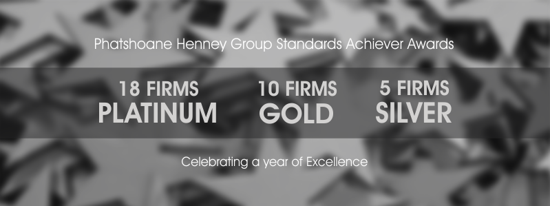 A total of 33 Phatshoane Henney Group Firms received Platinum, Gold and Silver Achiever Awards following the Group’s annual Group Standards Certification process conducted at the end of 2018.